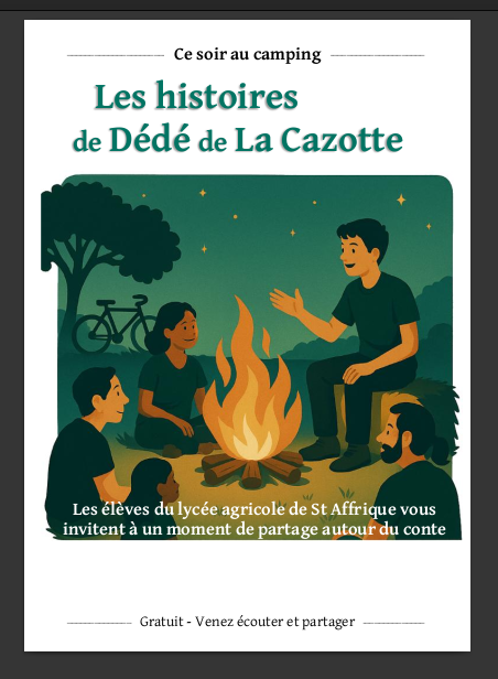 Les élèves de la classe de 3ème « enseignement agricole » du lycée de La Cazotte ont travaillé sur l’oralité avec leur enseignant d’éducation socioculturelle. Sur un trimestre ils ont appris à poser leur voix, travailler leur posture, leur élocution, etc, ainsi qu’à construire et raconter une histoire. Chaque élève a donc élaboré une histoire à partir d’anecdotes du milieu rural et agricole. Puis, lors du voyage scolaire itinérant en vélo le long du canal du Midi, les élèves ont dû raconter leurs contes devant différents publics. Ces histoires sont regroupées autour d’un même personnage, fictif, nommé par les élèves André « Dédé » de La Cazotte ! Un enregistrement au studio de la radio de ces histoires vous est donc proposé ici. Merci pour votre écoute…
