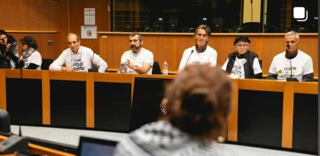 Après avoir été reçus au Sénat français le 22 avril dernier, les citoyennes et citoyens grévistes et jeuneurs de la faim de l’action « Faim de Justice pour la Palestine » sont reçus par les députés européens de la commission des droits de l’homme, le 24 avril au parlement européen à Bruxelles.
