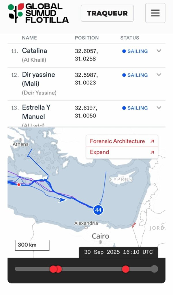 Ce soir, Mardi 30 septembre, les bateaux de la global Sumud Flotille risquent fort d’être stoppés dans leur action humanitaire….