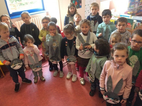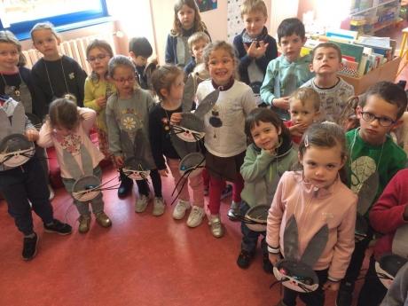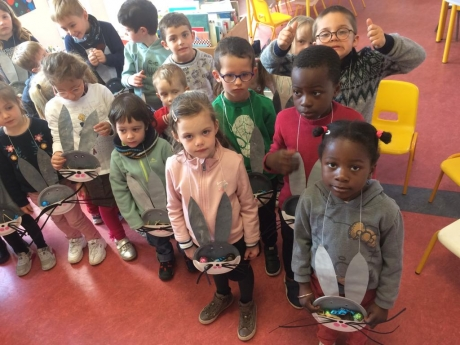-Nous fêtons Carnaval avec un bricolage pour y ranger les oeufs en chocolat que nous avons trouvé , la confection d’un gâteau, et même une boum ;