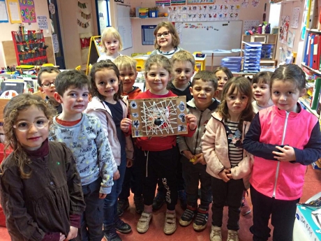 Une magnifique enveloppe sur laquelle trônait une imposante araignée…. une courageuse araignée qui a voulu manger un éléphant ! Une histoire qui se termine sur la balançoire pendant que nos petits reporters s’appliquent à faire du graphisme, à jouer avec les sons et les formes, tout en n’hésitant pas à nous réaliser « une minute du rire »….