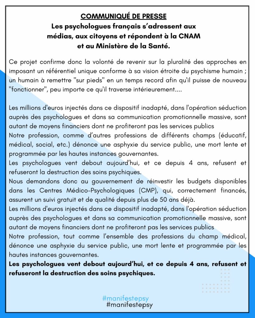 Nous recevons aujourd’hui en studio, Virginie Solier, psychologue à Saint Affrique, psychologue refusant d’entrer dans le dispositif « Mon soutien Psy », et qui va nous expliquer tout ce qui se cache derrière ce dispositif de la CPAM.