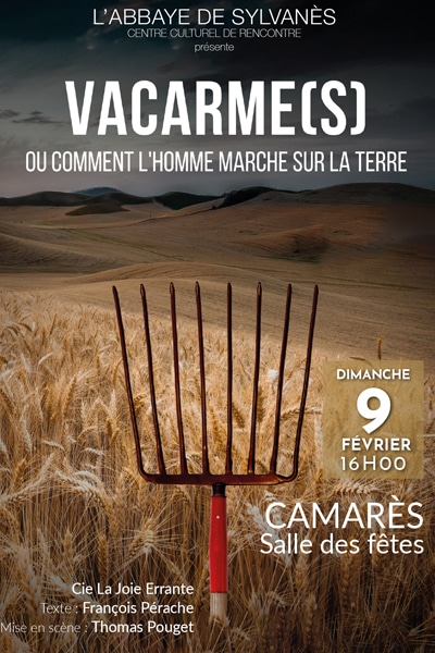 Ce dimanche 9 février, à 16h, à Camarès (salle des Fêtes), le Centre Culturel de Rencontres de Sylvanès vous propose une après-midi culturelle avec le retour de la Cie La Joie Errante qui vient jouer sa pièce « Vacarme(s) », un hymne théâtral au monde rural.